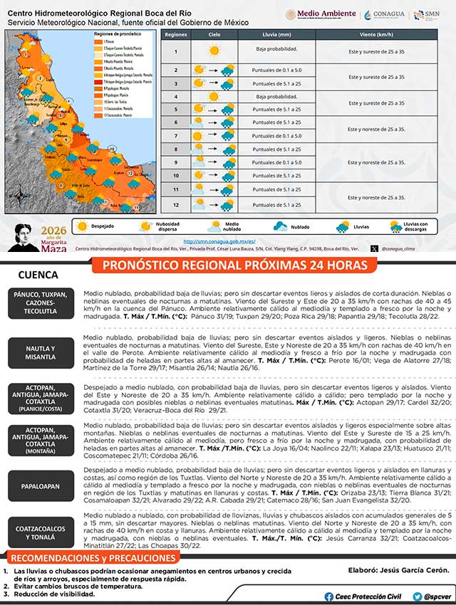 Se recomienda mantenerse informado de las actualizaciones del pronóstico meteorológico.