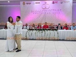 En las bodas colectivas celebradas en la víspera del Día del Amor, este jueves contrajeron matrimonio civil 69 parejas que vivían en unión libre en Tihuatlán.