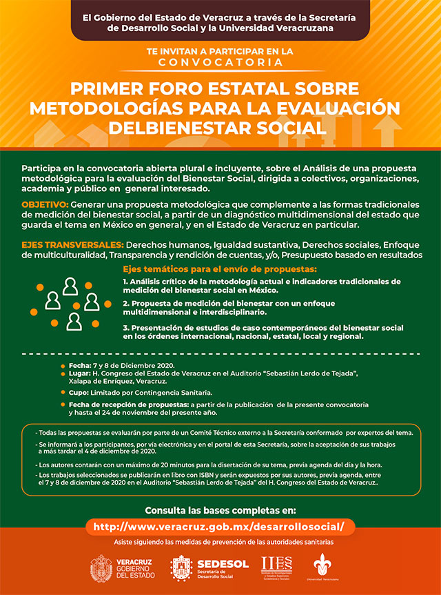 El Gobierno del Estado de Veracruz a través de la Secretaría de Desarrollo Social y la Universidad Veracruzana invitan al "Primer foro estatal sobre metodologías para la evaluación del bienestar social" .