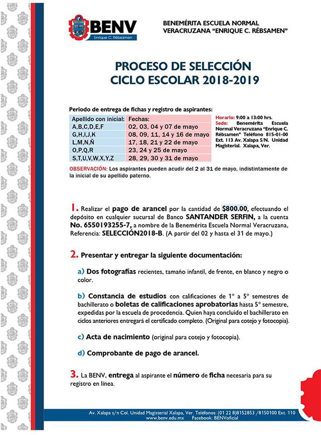 Xalapa, Ver., 3 de mayo de 2018.- Inicia el proceso de selección del Ciclo escolar 2018-2019 de la Benemérita Escuela Normal Veracruzana "Enrique C. Rébsamen".