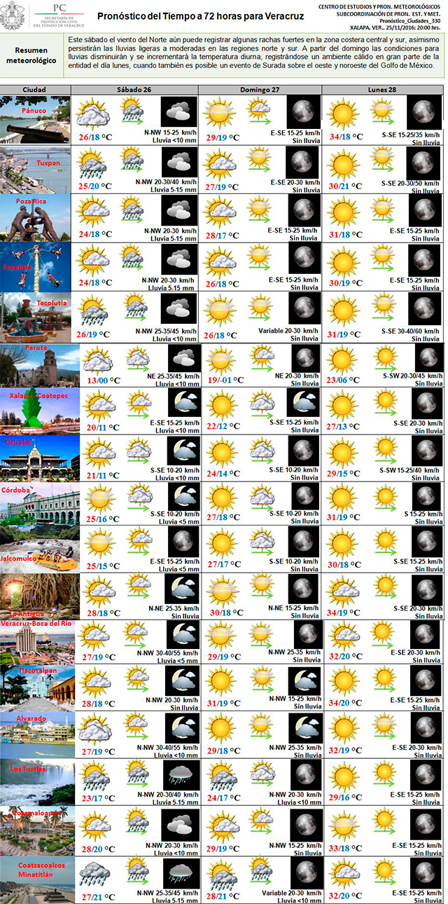 Se prevén durante el sábado rachas fuertes de “norte” en las costas del centro y sur, así como lluvias ligeras en el norte y sur del Estado; se registraría “surada” día el lunes