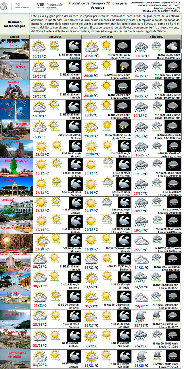 Se mantendrá ambiente diurno cálido en costas y templado en montaña. Incrementarán condiciones de lluvia a partir de la tarde-noche del viernes y se prevé “norte” el sábado