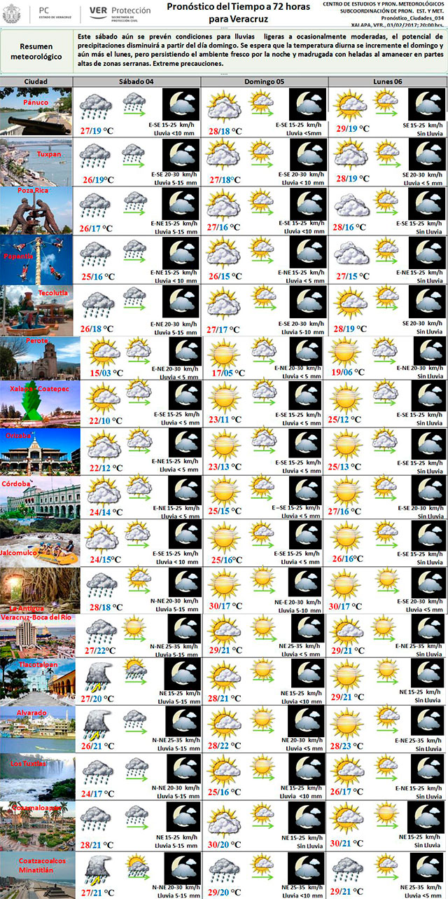 Este sábado aún se prevén condiciones para lluvias ligeras a ocasionalmente moderadas, el potencial de precipitaciones disminuirá a partir del domingo