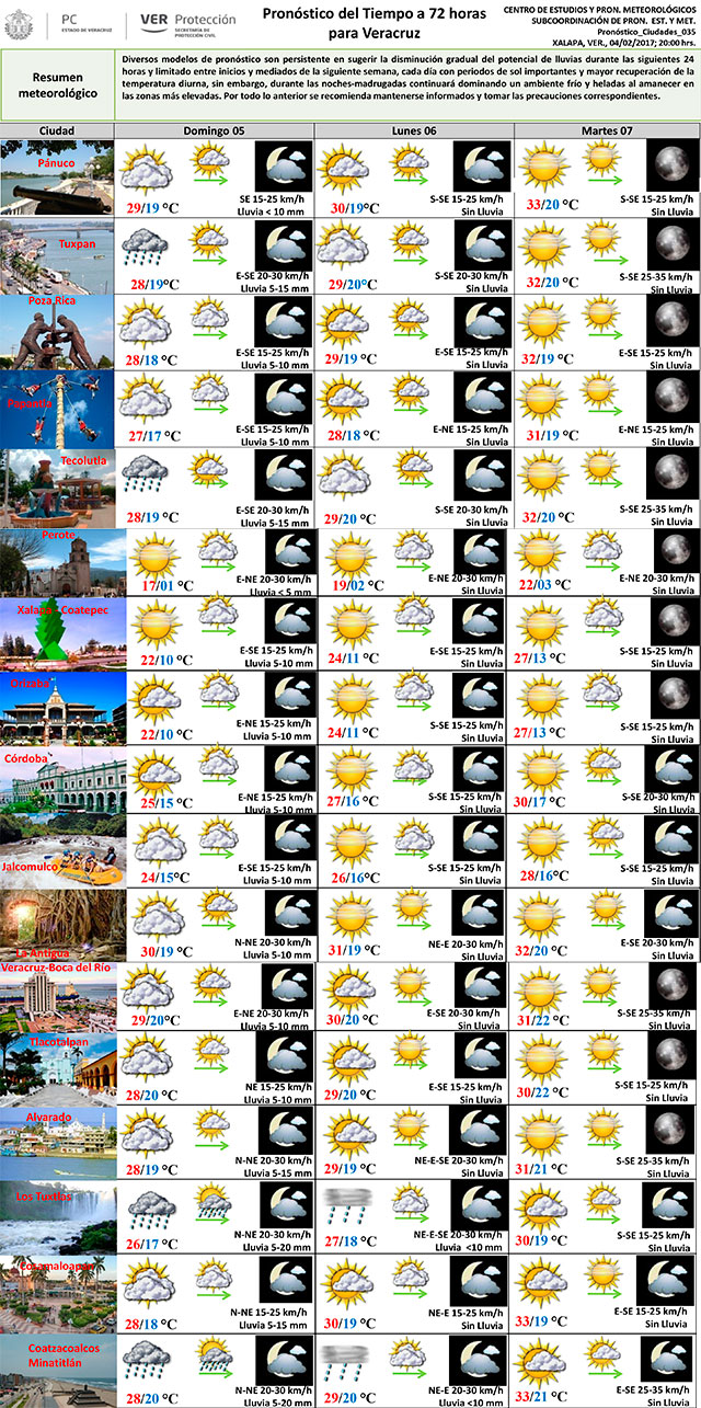 Disminuirán las lluvias en las siguientes 24 horas y la temperatura diurna se recuperará gradualmente; persistirán las noches muy frías en montañas