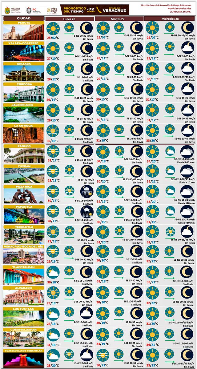 En siguientes 3 días tiempo estable, ambiente diurno más cálido, pero fresco a frío por las noches a primeras horas de las mañanas con heladas ligeras al amanecer en zonas de mayor elevación. El viento del este y sureste moderado a fresco y limitado potencial de lluvias sin descartar, nieblas-neblinas generalmente de nocturnas a matutinas.