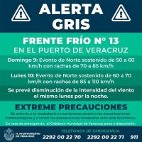 El Ayuntamiento de Veracruz, a través de la Unidad de Protección Civil, emitió una Alerta Gris ante la entrada del Frente Frío número 13 la mañana del domingo 9 de noviembre en el puerto de Veracruz.
