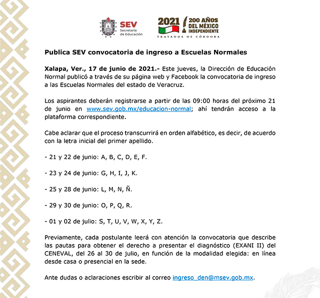 Publica SEV convocatoria de ingreso a Escuelas Normales