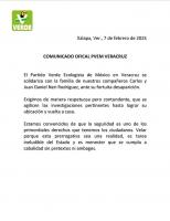 A través de un comunicado, el PVEM se solidarizó con la familia de sus compañeros ante su súbita desaparición. “Exigimos de manera respetuosa pero contundente, que se agilicen las investigaciones pertinentes hasta lograr su ubicación y vuelta a casa”.