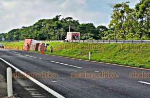 Rapiñan alimento tras volcadura de tráiler en la Coatzacoalcos-Villahermosa
