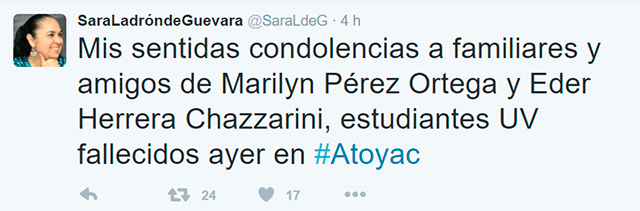 Rectora de la UV envía condolencias a familiares de estudiantes fallecidos en Atoyac