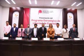 En la presentación del Programa Estratégico de Libertad de Expresión en Veracruz, a cargo de la Comisión Estatal para la Atención y la Protección de los Periodistas (Ceapp), la diputada Cecilia Guevara y el diputado Juan Javier Gómez Cazarín, presidenta de la Mesa Directiva y presidente de la Junta de Coordinación Política (Jucopo), respectivamente, refrendaron el compromiso de la LXVI Legislatura de abrir el diálogo en la coordinación de esfuerzos para que no sucedan más agresiones contra periodistas en la entidad.