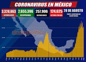 Sobre los pacientes activos, es decir, aquellos que han presentado síntomas en las últimas dos semanas y que puedes transmitir la enfermedad, el Informe Técnico Diario COVID-19 marca un incremento de 492, la cifra más pequeña registrada en la semana epidemiológica 32, el total de estos casos asciende a 124 mil 625.