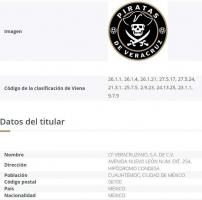 En la página IMPI se observa ya escudo del equipo, el cual es de forma circular y en color negro con líneas doradas, la palabra “Piratas” con un pequeño balón en cada costado y una calavera con 2 espadas cruzadas y un sombrero de pirata que trae una “V”.