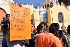 Taxistas de la agrupación "Macuiltépetl" se manifiestan en la Plaza “Sebastián Lerdo de Tejada” y bloquean la vialidad en la calle Juan de la Luz Enríquez de manera intermitente.