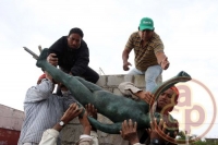 “En un acto de vandalismo se les cortó los brazos y el municipio se dio a la tarea de restaurarlos, para esto nos avocamos a buscar a la persona de realizar el trabajo de manera adecuada y fue asignado al escultor Bernardo Luis (…) realizó un trabajo muy profesional y aquí estamos en la etapa de preinstalación”, dijo Crescencio Castillo Nicolás, Director de Obras públicas del Ayuntamiento de Veracruz.