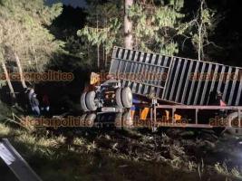 La madrugada de este viernes, en la carretera federal Xalapa-Perote, 2 contenedores que eran transportados por un tractocamión con doble remolque terminaron volcados fuera del camino luego de desprenderse de la unidad cuando circulaba cerca de la comunidad de Cruz Blanca, en el municipio de Villa Aldama.