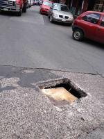 Reporten y tomen cartas en el asunto para que se hagan cargo de su reparación, siendo un verdadero riesgo para transeúntes y vehículos, por ser una calle de alto flujo vehicular.