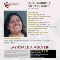 El segundo caso documentado ante la Fiscalía es el de Ana Gabriela Silva Duarte de 35 años, vecina de la ciudad de Córdoba, desaparecida también este martes 27 de julio al salir de su domicilio tras lo cual perdió comunicación con su familia.