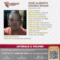 Se solicita de manera urgente la colaboración de la ciudadanía y de las autoridades de los tres niveles de gobierno para la localización del ciudadano José Alberto Osorio Rosas, de quien se desconoce su paradero.