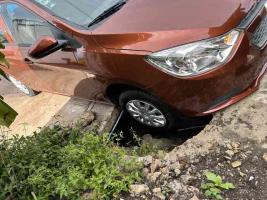 Ese vehículo cayó ahí y el tránsito vehicular se vio afectado por obvias razones. Soy vecino de la zona y casualmente pasaba por ahí cuando recién ocurrió y el propietario del vehículo junto con un taxista estaban tratando de conseguir más gente para que los ayudara a levantar y sacar el carro. Los apoyé pero cabe recalcar que nadie en CMAS salió a ayudar. Hasta el policía mejor se metió a esconderse. Reapareció cuando el vehículo ya estaba afuera.