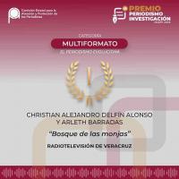 La Comisión Estatal para la Atención y Protección a los Periodistas (CEAPP) concedió el primer lugar en la categoría de reportaje multiformato al documental “El bosque de las monjas”, producido por Arleth Barradas Padilla, irónicamente, despedida por Radiotelevisión de Veracruz (RTV) por crear otro documental que se refería a la destrucción de la selva para construir el Tren Maya, aunque no era ese el objetivo, sino citándolo sólo como parte de un planteamiento más amplio.