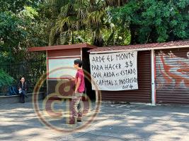 Los manifestantes se congregaron en el parque Los Tecajetes y portaron una lona con la leyenda: “Los asesinos del pueblo no se honran, se repudian”.
