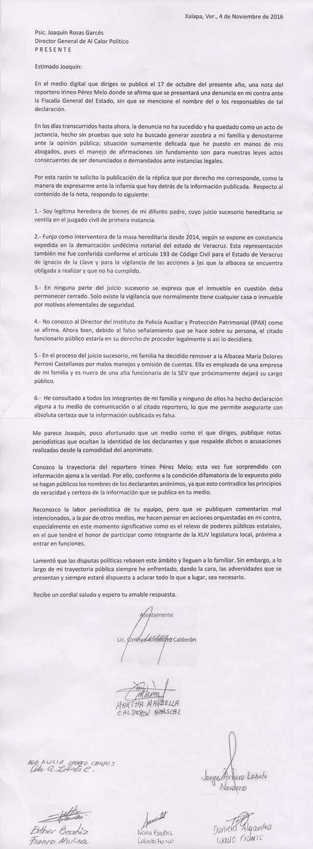 Responde Cinthya Lobato que es legítima heredera de bienes de su difunto padre