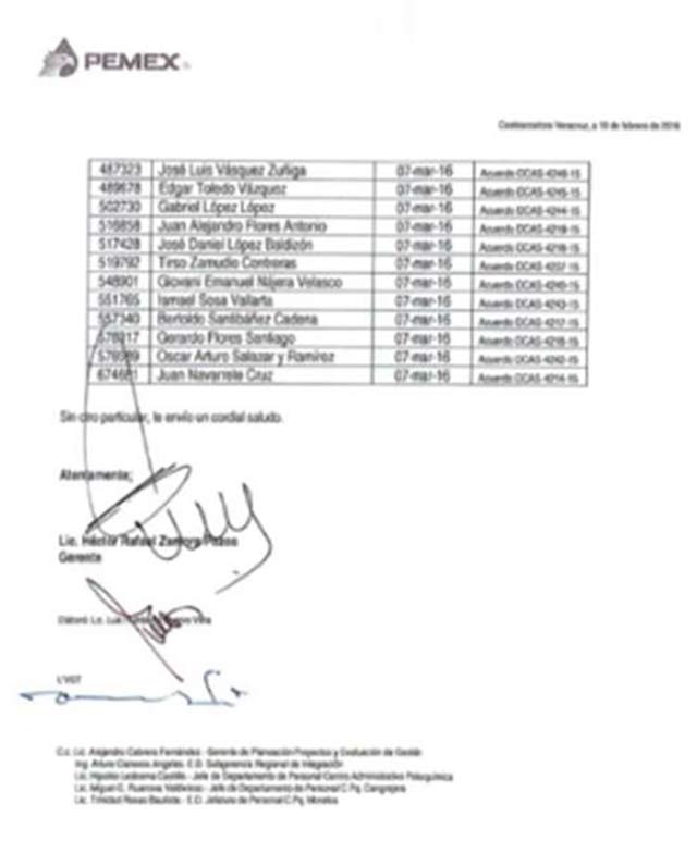 Hasta este momento la paraestatal no ha confirmado la veracidad del escrito, sin embargo este presenta firmas de directivos lo que mantiene en zozobra a los ahí mencionados.