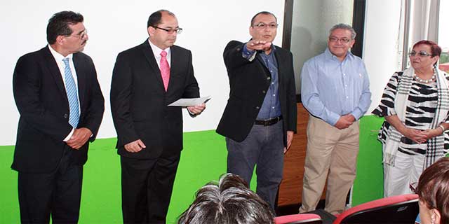 Xalapa, Ver., 10 de octubre de 2015.- El subsecretario de Educación Básica, Rosendo Pelayo Valdés, tomó protesta a Alberto Vázquez Santamaría como titular de la Subdirección de Supervisión Escolar, perteneciente a la Dirección General de Educación Primaria Estatal.