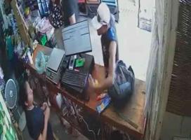 Se observa cómo le exigió que abriera la caja registradora, de dónde sustrajeron el dinero que había en el interior.