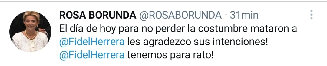 “El día de hoy para no perder la costumbre mataron a @FidelHerrera les agradezco sus intenciones! @FidelHerrera tenemos para rato!”, se lee en su perfil de dicha red social.