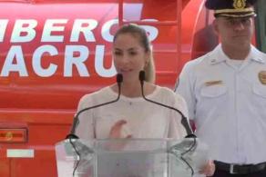 Al hacer entrega de equipo al Cuerpo de Bomberos de Veracruz, dijo que la alcaldesa electa “se queja mucho” y “a ver” si va a poder con la administración del municipio.