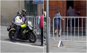 Minutos después del mediodía de este miércoles se observó a Rodríguez llegar al recinto histórico portando un casco de la policía de Tránsito de la Ciudad de México y tras bajarse de la moto, entró corriendo a Palacio Nacional.