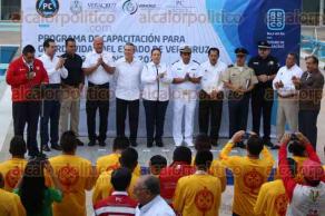 La funcionaria acudió al curso de capacitación que personal de Texas está dando a guardavidas de las zonas costeras del Golfo de México en las albercas de Leyes de Reforma, del Instituto Veracruzano del Deporte.