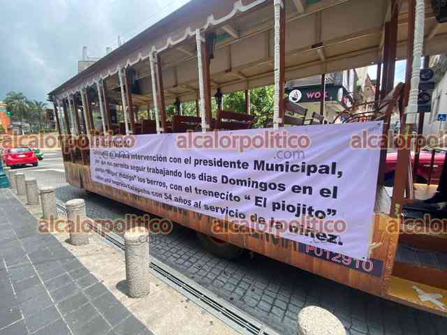 Xalapa, Ver., 30 de mayo de 2021.- Con una lona, tren turístico “El piojito” pide la intervención del Gobernador para seguir trabajando los domingos en el parque Los Berros.