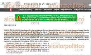 La Secretaría de Hacienda y Crédito Público, el Servicio de Administración Tributaria, la Administración General de Auditoría Fiscal Federal y la Administración Central de Fiscalización Estratégica, agregaron en la publicación del lunes pasado en el Diario Oficial de la Federación, el Anexo 1 del oficio número 500-05-2016-38644, de fecha 25 de octubre de 2016, correspondiente a contribuyentes que “NO aportaron argumentos ni pruebas para desvirtuar el motivo por el que se les notificó el oficio de presunción, motivo por el cual se actualizó DEFINITIVAMENTE la situación a que se refiere el primer párrafo del artículo 69-B del Código Fiscal de la Federación”, explica el documento.