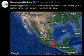 El Sismológico Nacional informó que el movimiento se registró al norte de Puerto Escondido, Oaxaca