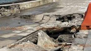 La plancha está totalmente colapsada y la intensidad de las olas se mantiene fuerte, por lo cual la navegación sigue cerrada para embarcaciones. El viento y la marejada, que arrojan agua sobre la banqueta del bulevar, también provocaron que otros adoquines se desprendieran.
