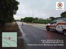 La Dirección de Protección Civil Municipal de San Rafael determinó por seguridad de quienes conducen vehículos pequeños no permitir el paso por esa zona de carretera federal, sólo están permitiendo ha unidades de gran tonelaje continuar su camino.
