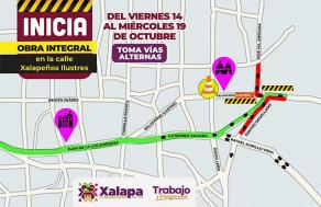 Por trabajos de demolición y rehabilitación de pavimento con concreto hidráulico de las calles Rojano y Nogueira, la calle Xalapeños Ilustres permanecerá cerrada desde la noche de este viernes, a las 19:00 horas.