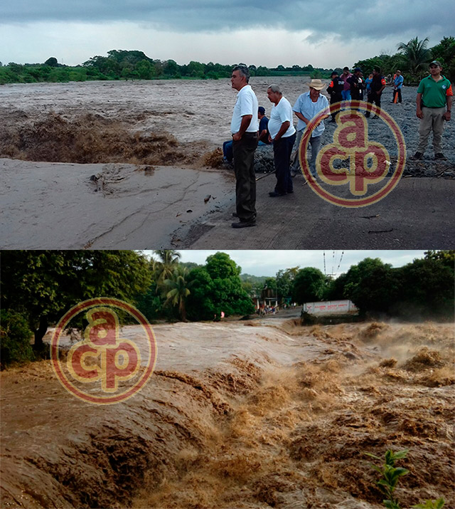Actopan, Ver., 9 de septiembre de 2017.- Las intensas lluvias provocaron el desbordamiento del río Paso de la Milpa, a la altura de Real del Oro; no hay paso hacia la localidad de la Bocana por el aumento de la corriente.