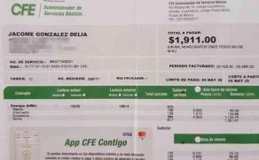 "Hace dos meses me llegó de 1,911 pesos y ahorita me llegó de 3 mil 700 pesos, me llegó al doble, ellos están diciendo que porque está uno en casa pero yo todo el tiempo estoy en casa, para mi es lo mismo, sigo igual, soportando el calor", dijo la señora Delia Jácome Sánchez.