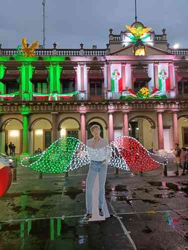 Xalapa, Ver., 12 de septiembre de 2022.- En redes sociales se hizo viral una imagen de Kim Namjoon, de la banda surcoreana BTS, que colocaron la noche del 10 de septiembre frente a Palacio de Gobierno, como si se tomara una foto por el mes patrio.