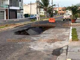 Se hunde pavimento en calle del Fraccionamiento Costa de Oro de Boca del Río
