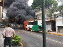 Un presunto cortocircuito ocasionó el incendio de un autobús sobre la avenida Venustiano Carranza, en Papantla, por lo que se movilizaron cuerpos de rescate; no hubo víctimas ni lesionados.