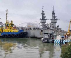 Alrededor de las 10 de la mañana de este sábado equipos de emergencia se movilizaron al muelle donde el buque ha estado anclado, en medio de otras 2 fragatas: ARM Victoria y ARM Mina.