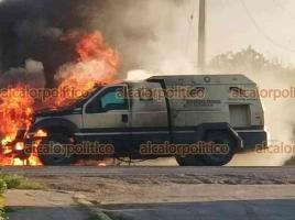 Se incendia camioneta de valores de COMETRA, en Cosoleacaque