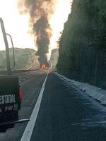 Se incendia pipa cargada con diésel, en Emiliano Zapata; no se reportan heridos