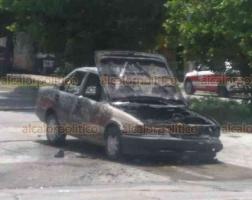 Se incendia taxi y queda completamente calcinado, en Coatzacoalcos