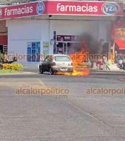 De acuerdo con testigos, el automóvil comenzó a sobrecalentarse en la parte del motor lo que obligó al conductor a detener su marcha frente a un restaurante de mariscos. En cuestión de minutos las llamas envolvieron la unidad, lo que causó alarma entre transeúntes y locatarios. Vecinos y comerciantes de la zona, con apoyo de extintores, intentaron controlar el fuego antes de la llegada del Cuerpo de Bomberos de Coatepec, quienes finalmente lograron sofocar las llamas y enfriar la unidad para evitar un nuevo brote del incendio.
